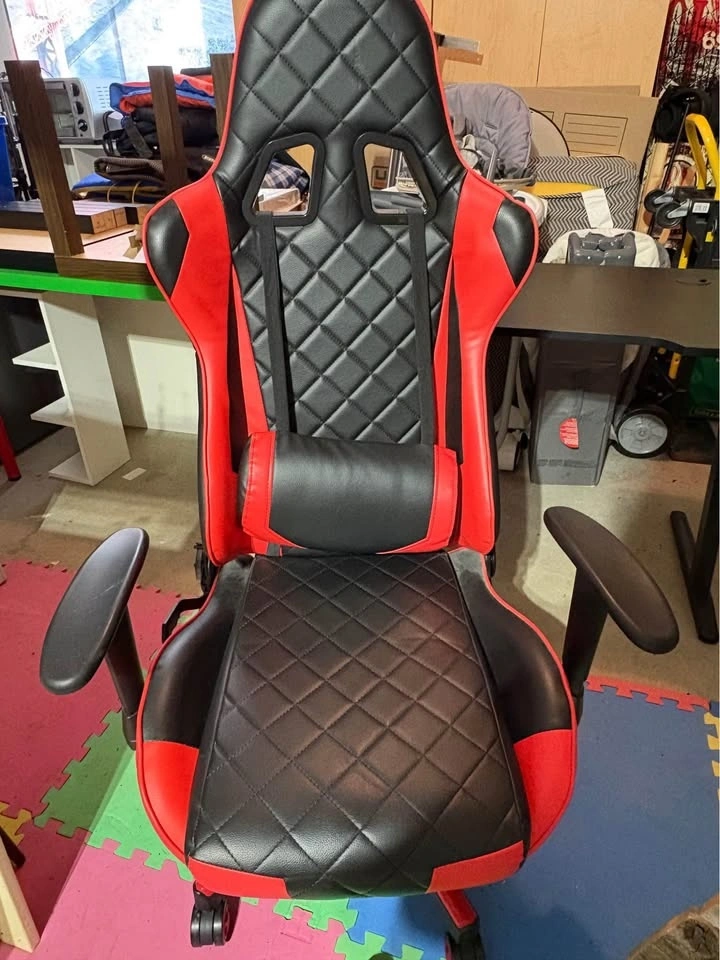 Gaming desk and gaming chair being sold together, measurements in pictures. No holds. Cash only. Let me know if you're interested!