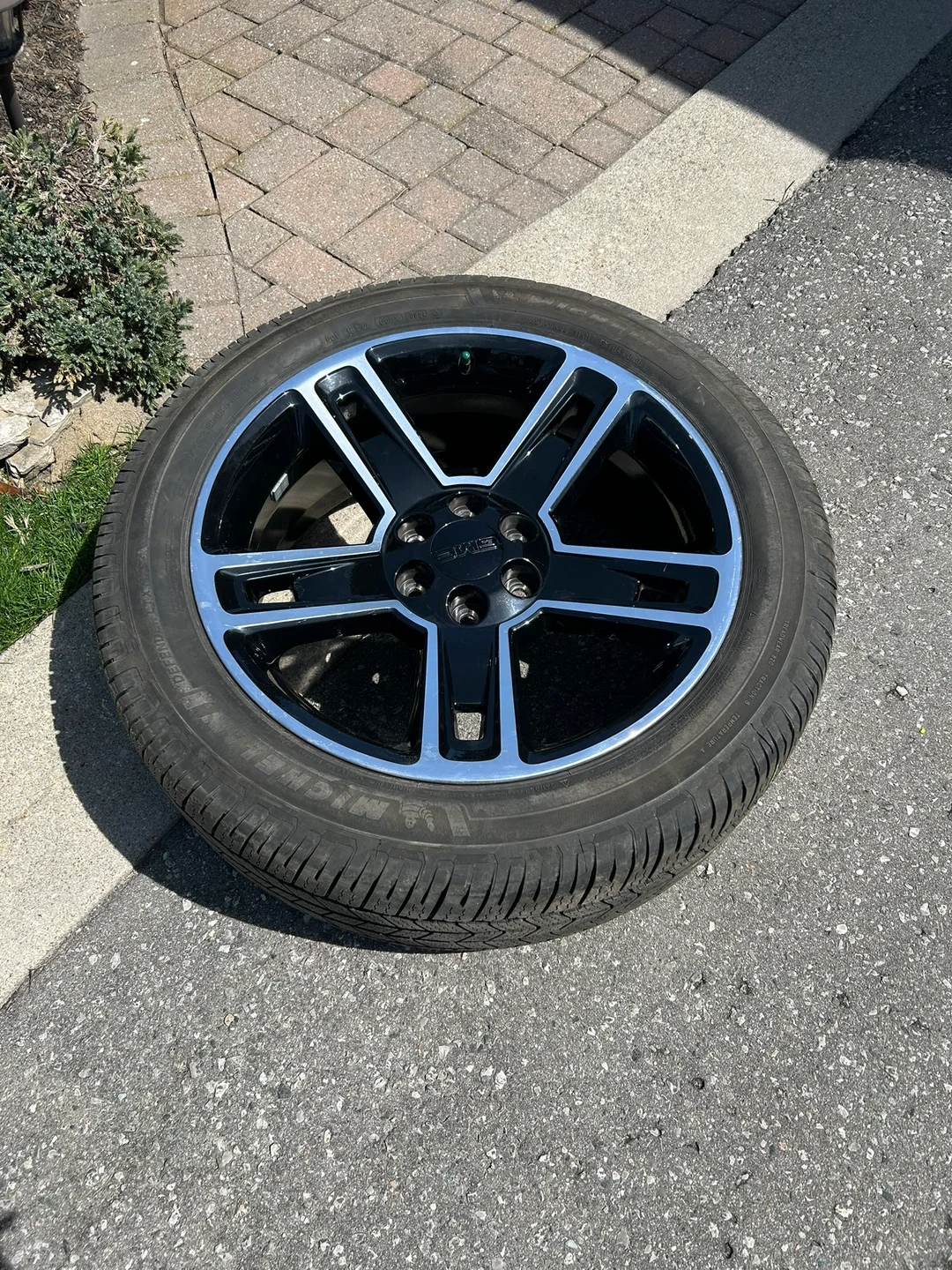 Selling 4 22 inch GMC rims with Michelin Defender LTX tires. The tire size is 275/45R22. They have less than 1000 km on them. Never been winter driven, no curb rash,plenty of life left!