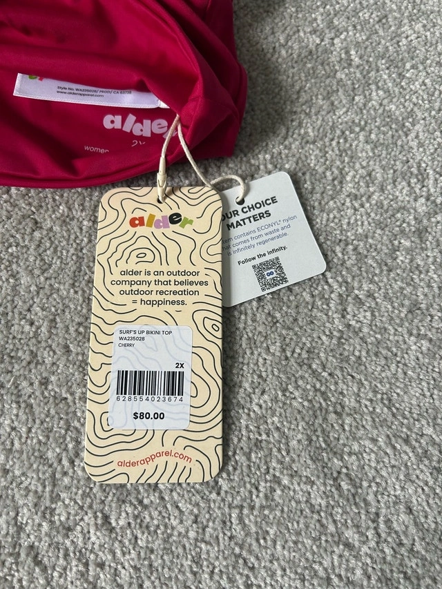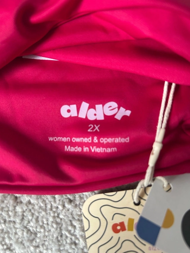 This brand new Alder Apparel Basin Bikini Top, size 2X, in a vibrant magenta colour, is designed for both style and performance. It features a supportive square neckline and a comfortable, cropped fit, making it perfect for workouts or the beach! Key features include: * Size: 2X * Colour: Magenta * Brand: Alder Apparel * Style: Basin Top * Condition: New with tags Let me know if you're interested!