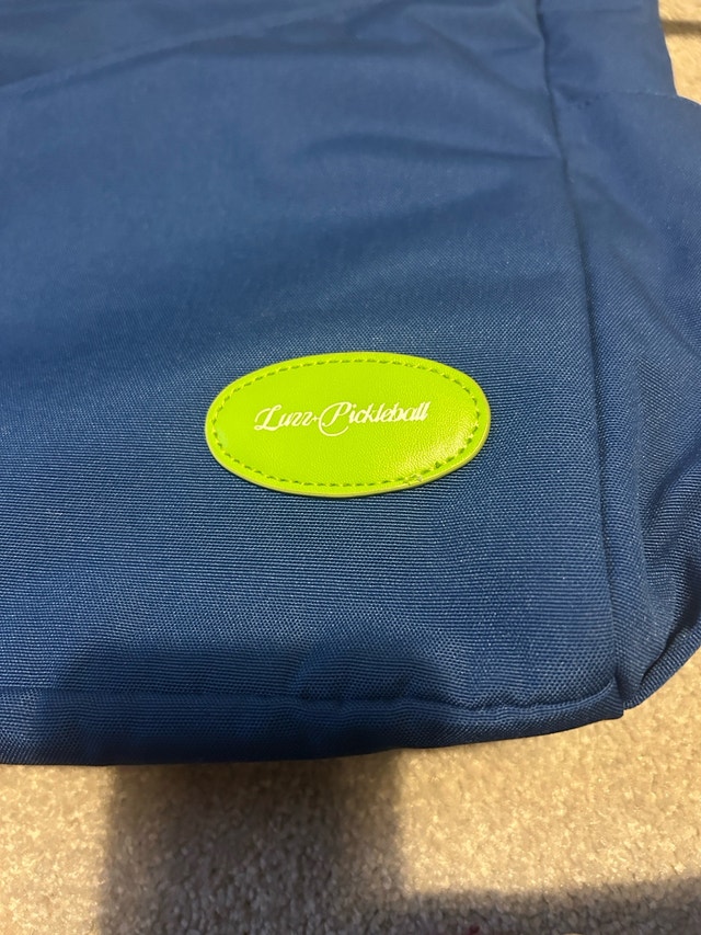 This Luar Pickleball bag in a blue colour is perfect for carrying all your gear to the court. This bag is new. It features vibrant green straps and trim, adding a pop of colour to its functional design. Here are some of the features of the bag: * Durable construction * Multiple pockets for organization * Comfortable shoulder straps * Stylish design