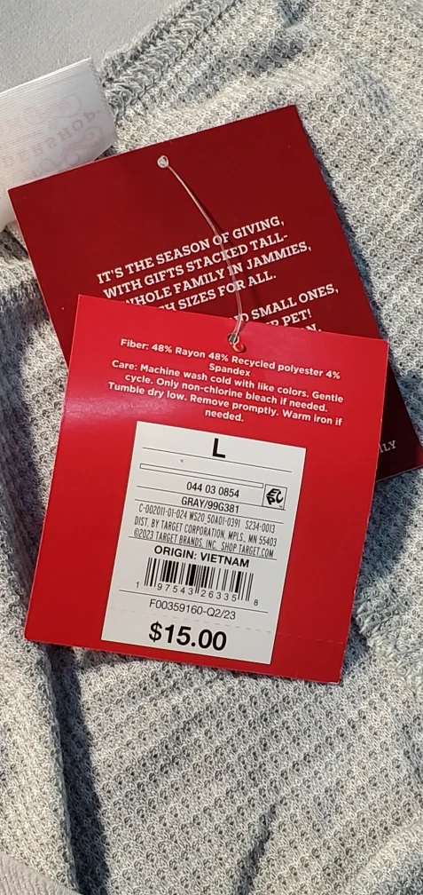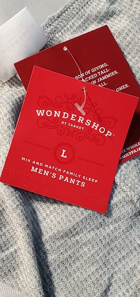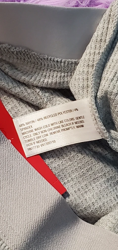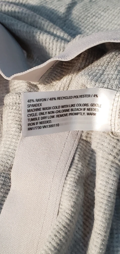 These are brand new waffle knit lounge pants. They are gray in color and made of 48% rayon, 48% recycled polyester, and 4% spandex. They measure about 42 inches in length.