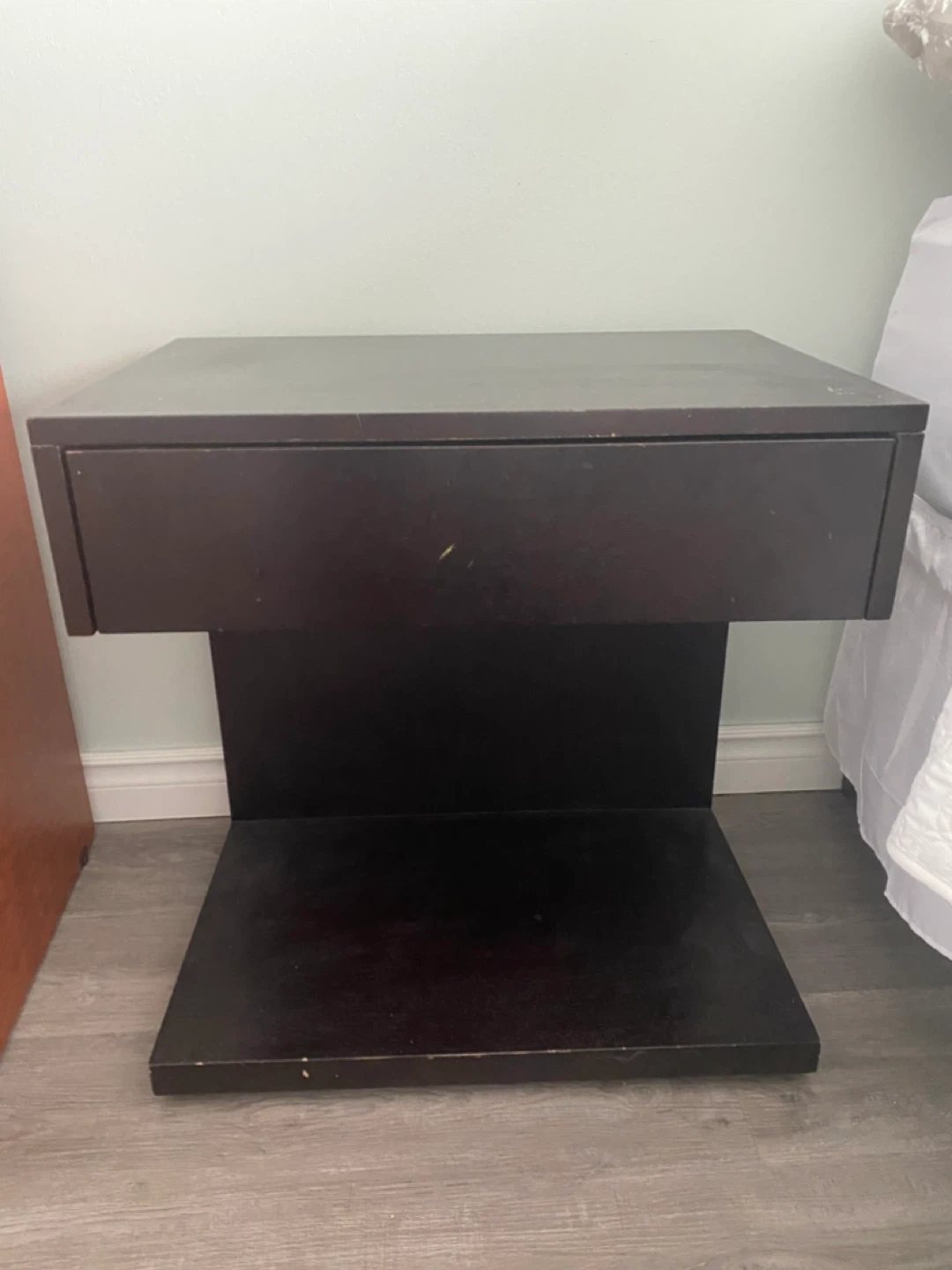 Selling a dark espresso colour nightstand. It features a single drawer for storage.