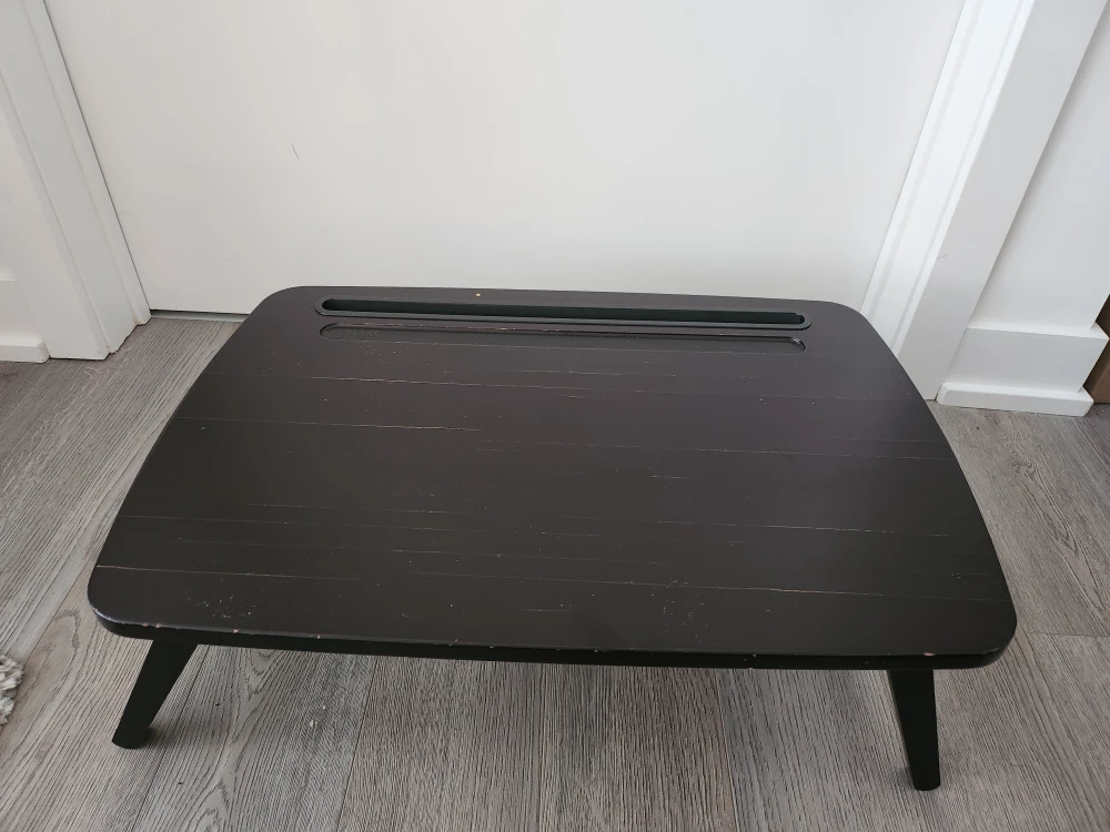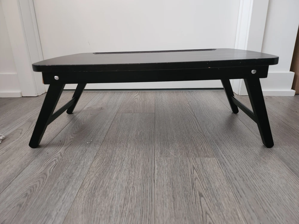 Selling a handy black bed desk! It has folding legs for easy storage and a little drawer on the side. Great for working or enjoying breakfast in bed