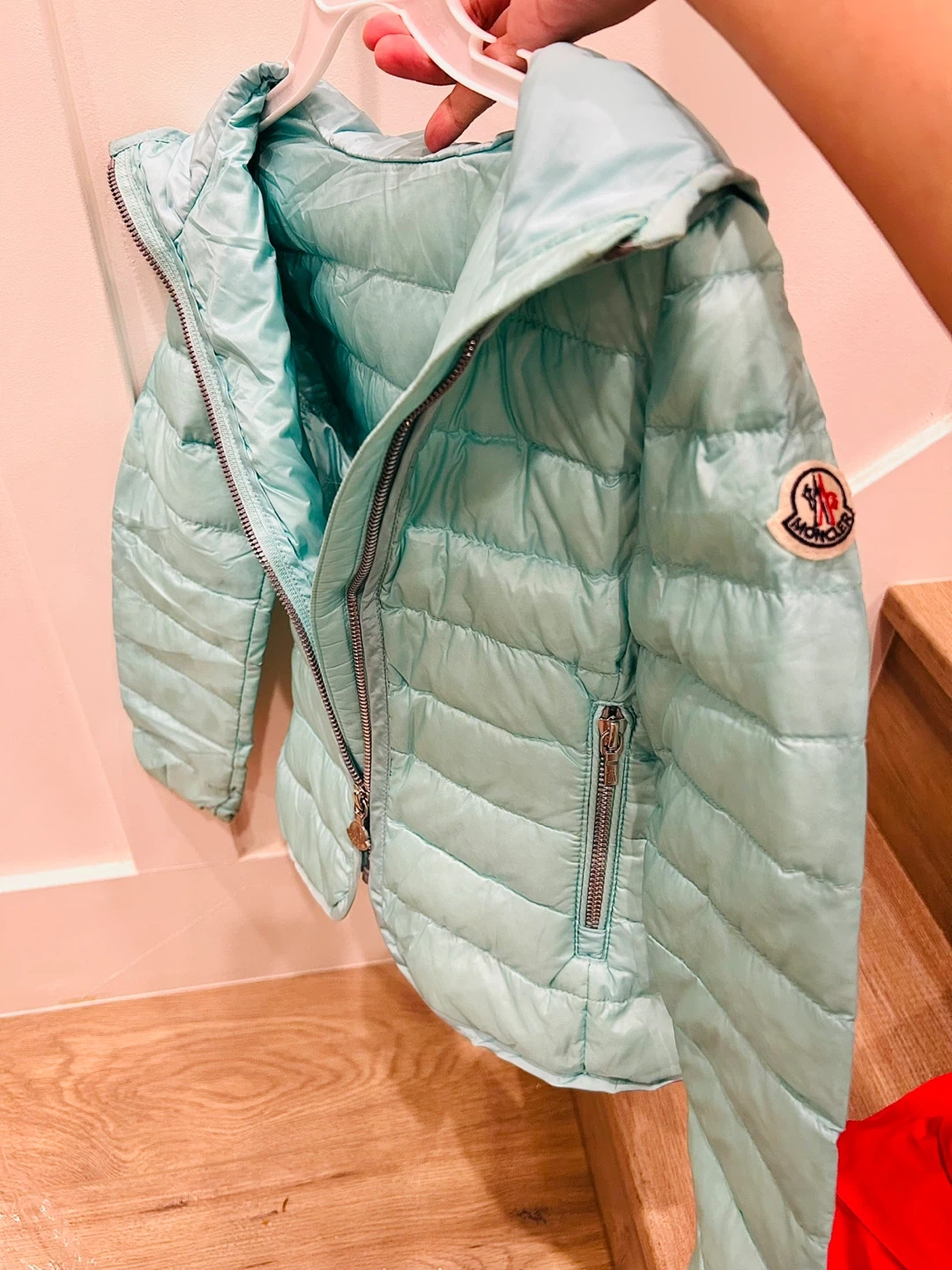 Selling a cute Moncler kids puffer jacket in a lovely mint colour! It's a down jacket, perfect for keeping your little one warm and stylish. The jacket is in excellent condition and comes with its original packaging.