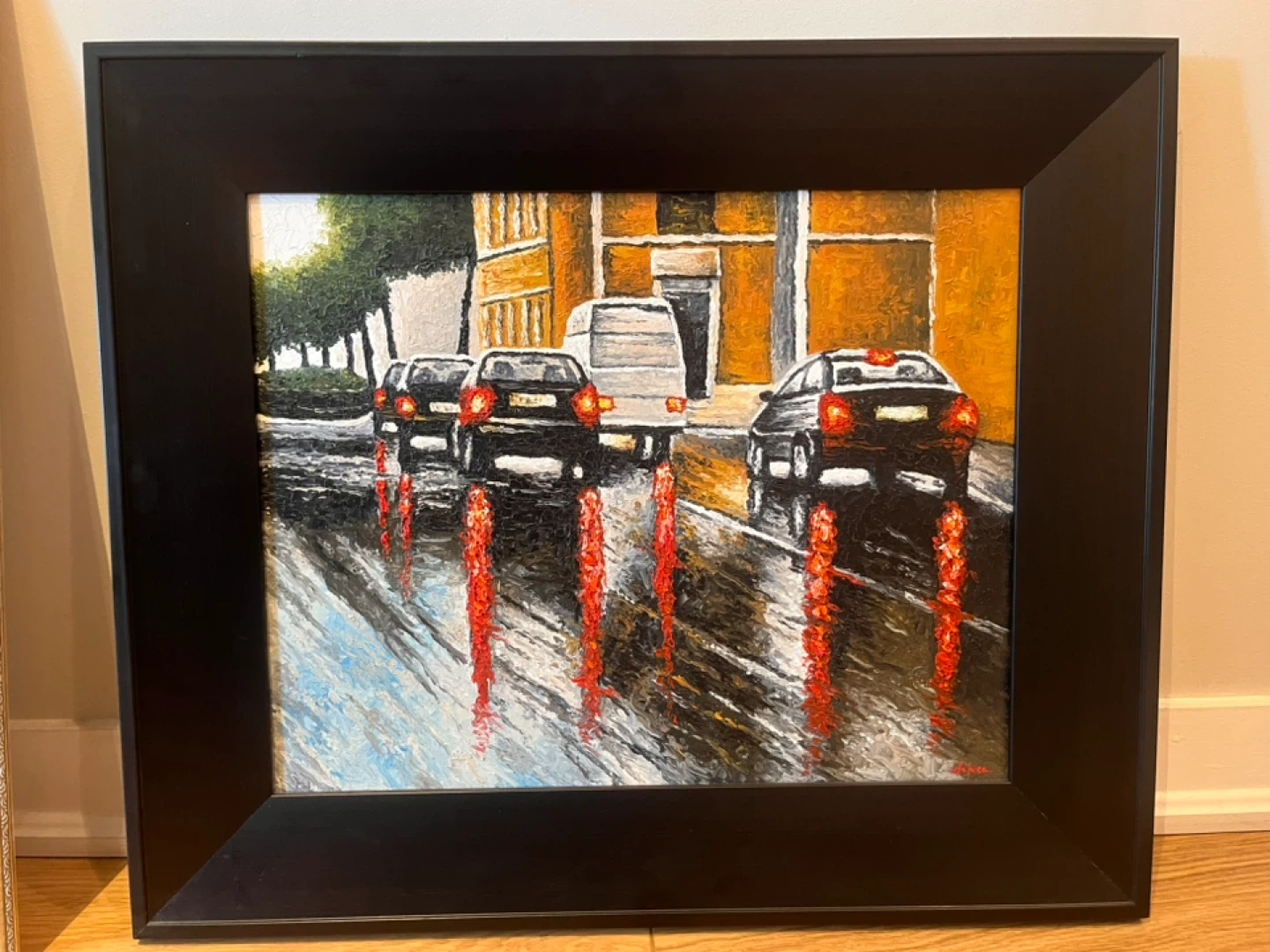 Beautiful original painting of European street scape. Professionally framed. This would look great in an office, den or bedroom! Signed by the artist.