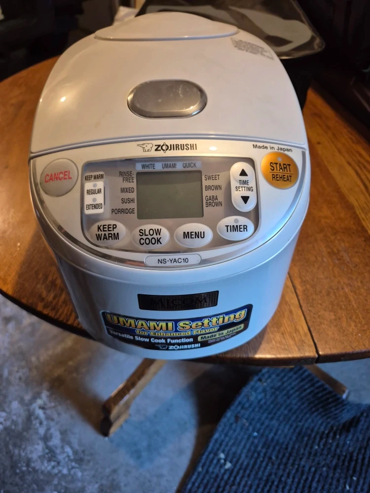 Selling a Zojirushi NS-YAC10 rice cooker. It's in great condition and ready to cook up some delicious rice! It has settings for white rice, umami, quick cooking, sushi, porridge, and more