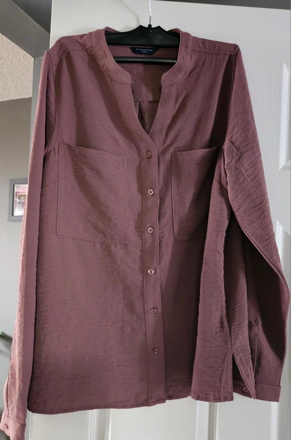 Denver Hayes blouse in size M/M. It's a lovely mauve colour and made of 100% polyester. Worn once. Smoke free. Pick up only east mountain. Cash only.