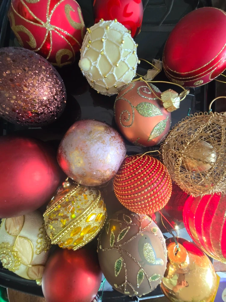 -Comes with really beautiful gold & burgundy ornaments