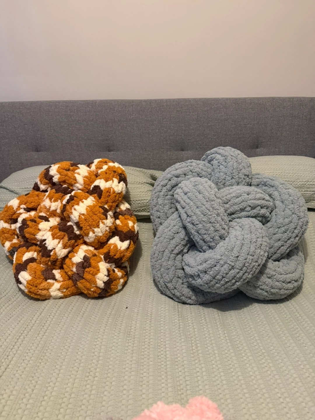 Handmade chunky knit knot pillow in a lovely soft grey or earthy tones. Great fun and whimsical addition to any room!