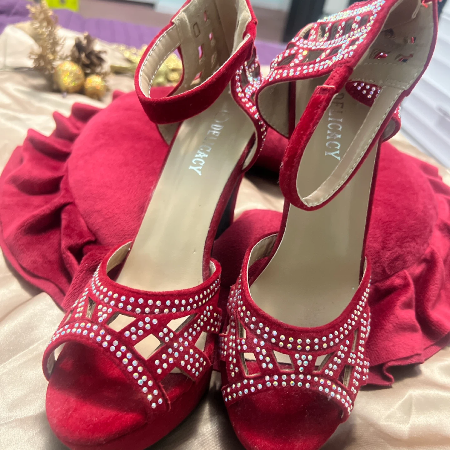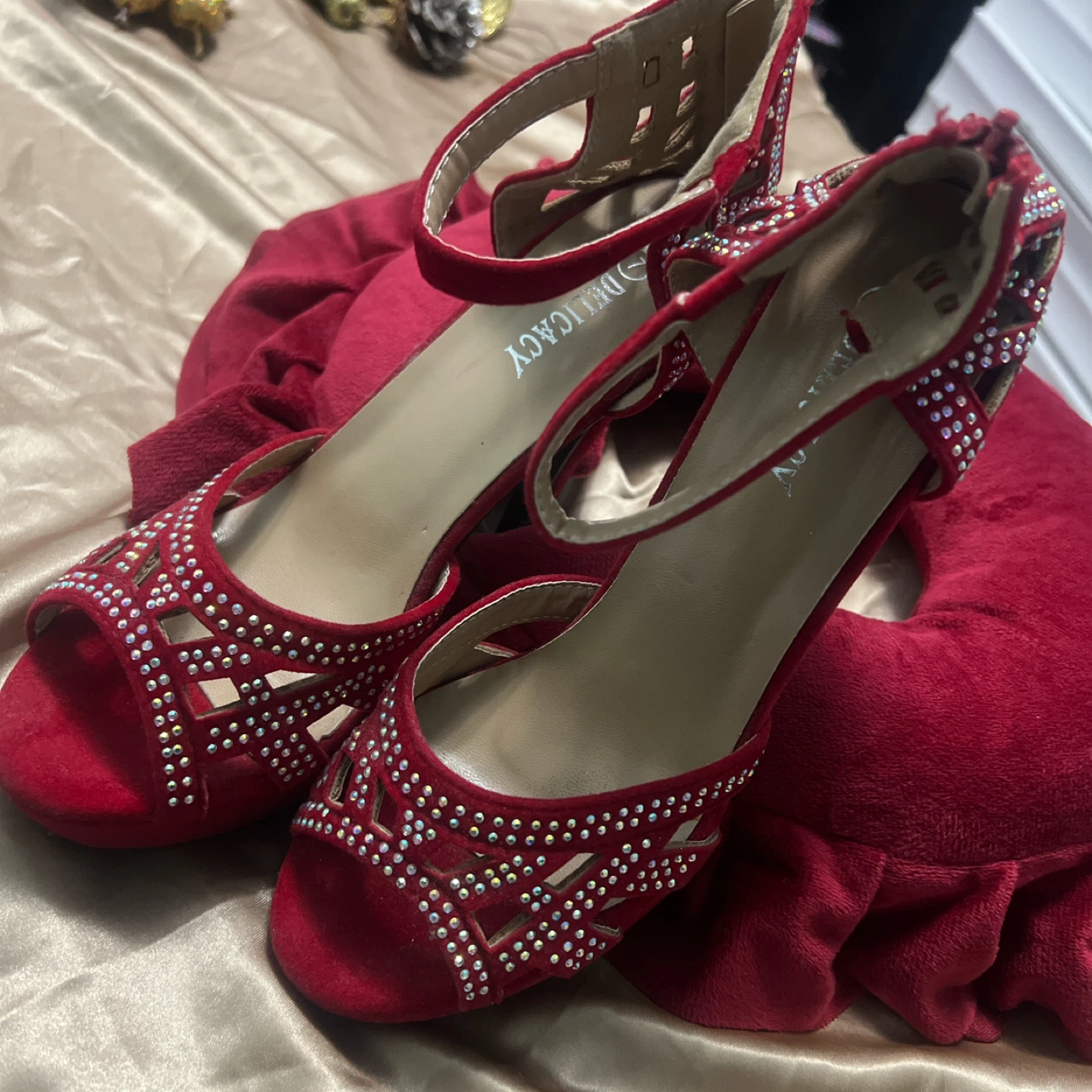 1 / 41 / 4Buy & SellDelicacy Red Heels - Size 7Delicacy Red Heels - Size 7$10Selling a pair of Delicacy red heels in size 7. They feature a cute, embellished design. Perfect for a night out!ConditionGoodSize7BrandDelicacyWHERE TO MEETBridletowne CircleView MapSELLERverifiedPranitaBridlewood842 reviews0 chats·0 favorites·31 viewsSEND CHAT TO SELLERHi Pranita! I’m interested in your listing.Hi Pranita! I’m interested in your listing.Get the Karrot app to chatSign In to chat