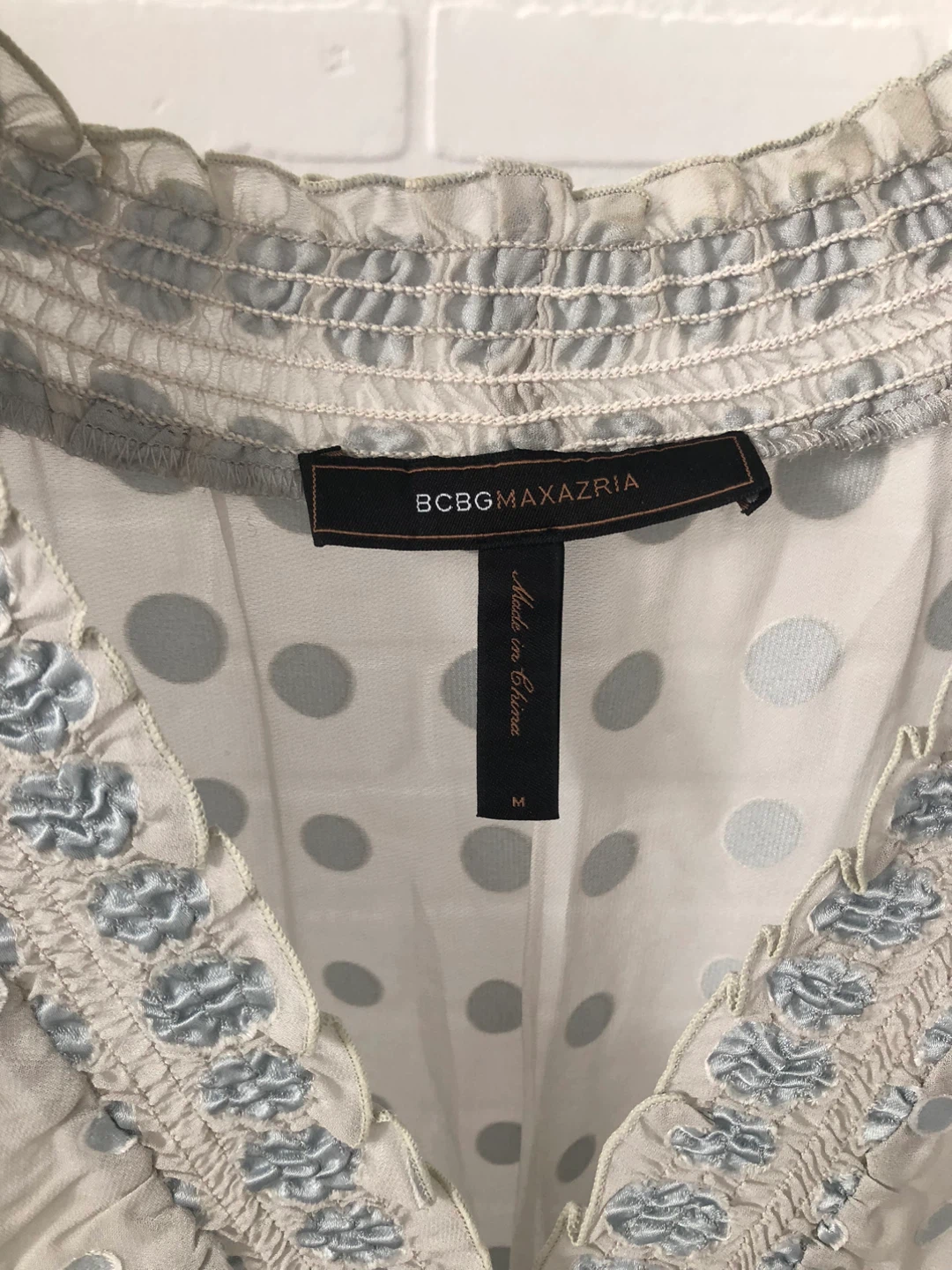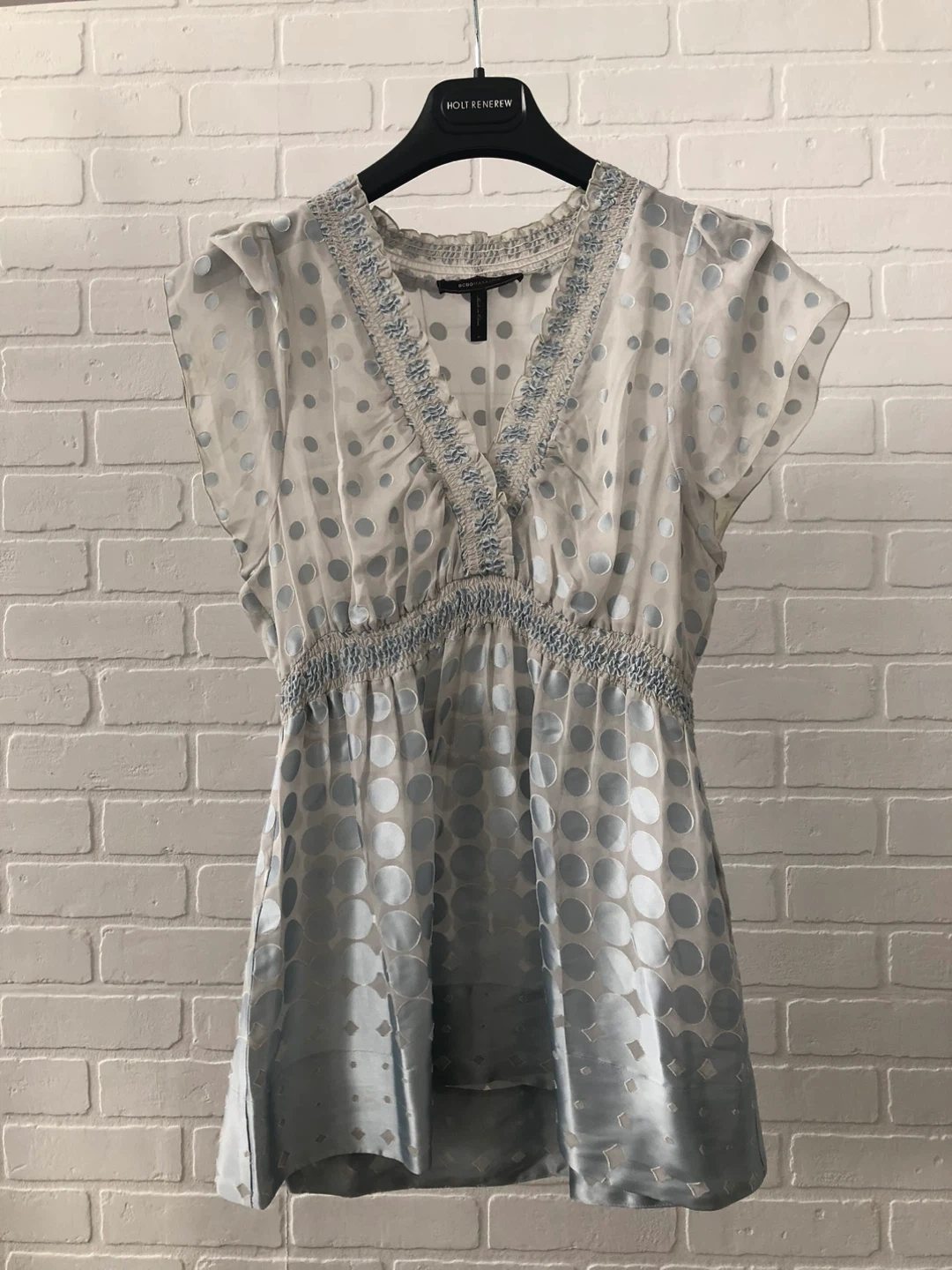 A stunning delicate silky top in size M! It features a polka dot pattern and a flattering V-neck design. Perfect for adding a touch of style to your wardrobe during upcoming festive season!