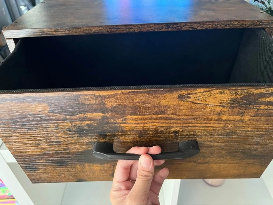Brand new. Retails $40, selling for only $20. Rustic brown colour, prettier in person. Non-woven fabric drawer. Could be a storage/display shelf at living room, office, kitchen to organize plant, picture frames, lamp, mugs, books, phones,etc. Pls see photos for dimensions