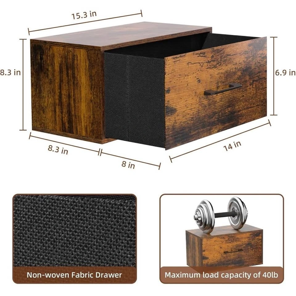 Rustic Shelf with Drawer, Small Bedside Shelf