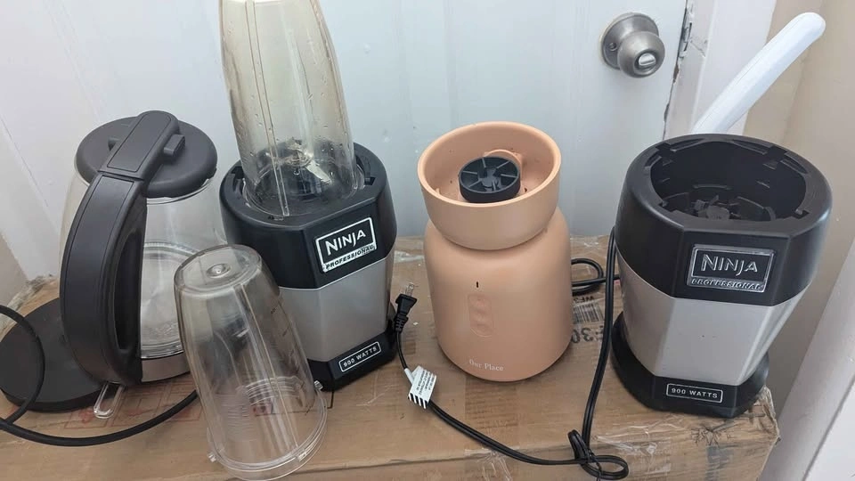 2 Ninja & Our Place blenders, motors working, but blades damaged. Hamilton Beach electric kettle, untested. All free, fastest pickup only, no holds. Burlington π
