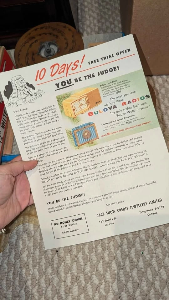 Original 1950s Bulova “You Be The Judge” advertising flyer from Jack Snow Credit Jewellers, Ottawa
