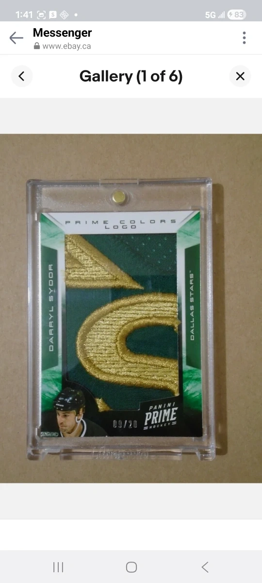 Selling a Darryl Sydor Panini Prime Colors Logo hockey card. It's a cool collectible for any hockey fan! Remember all items can be shipped Canada wide for an extra $10 with tracking. I will send it Paypal invoice for our security of transaction purchase and sale. You may also choose to use interact in your confidence