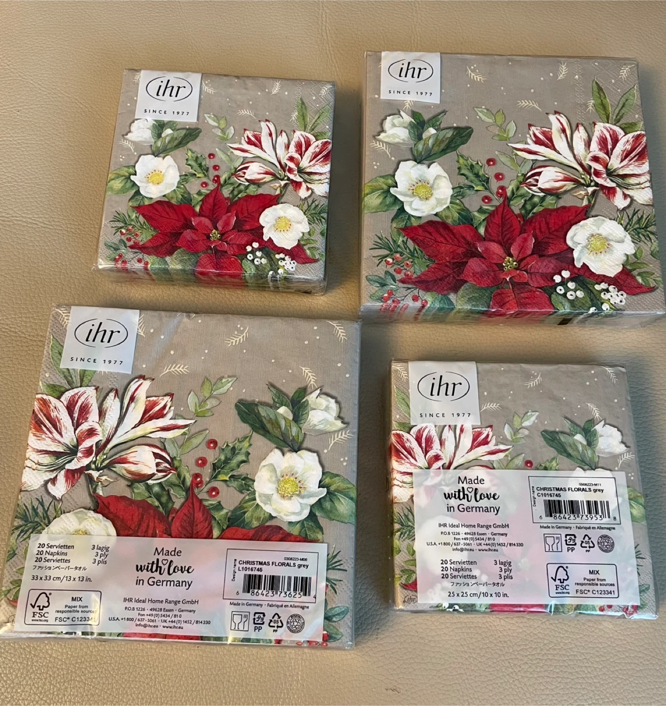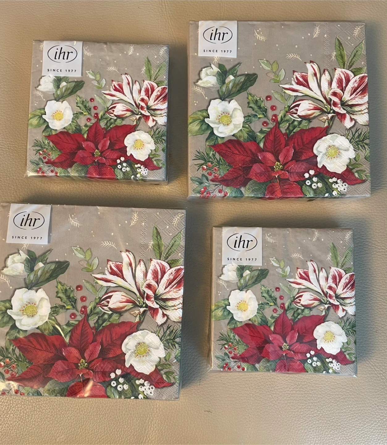 I'm selling a bundle of IHR paper napkins with a beautiful Christmas Floral design! These napkins are brand new and still sealed in their original packaging.