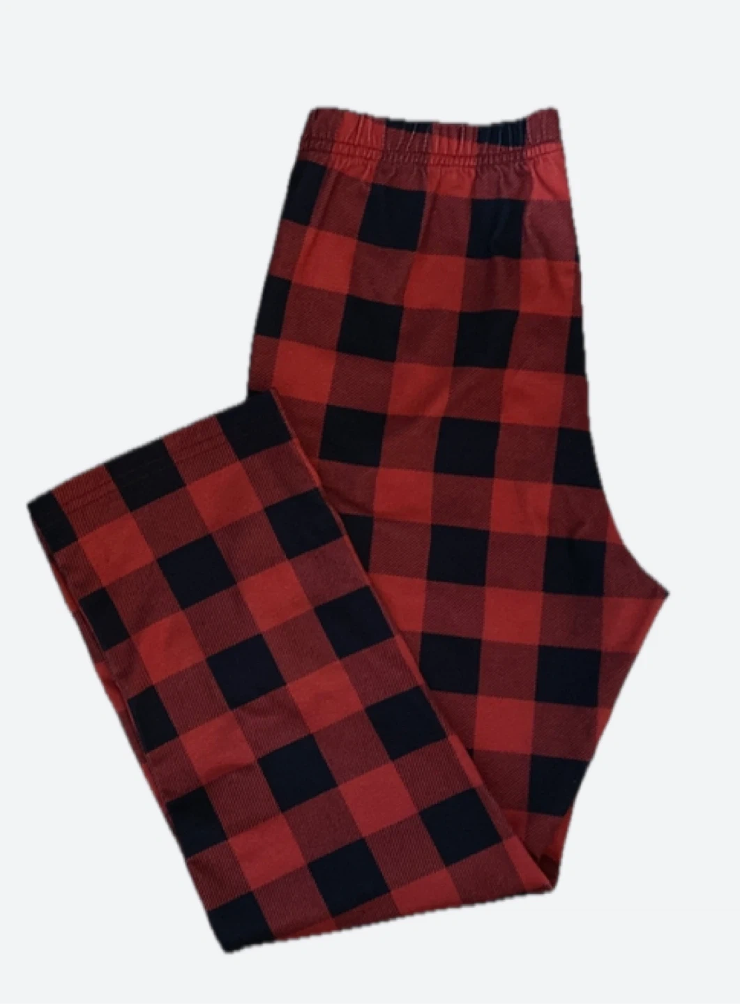 Cozy up in these red and black plaid pajama pants! They're perfect for lounging around the house or getting a good night's sleep. The classic plaid pattern is always in style, and the elastic waistband ensures a comfortable fit. Worn once.