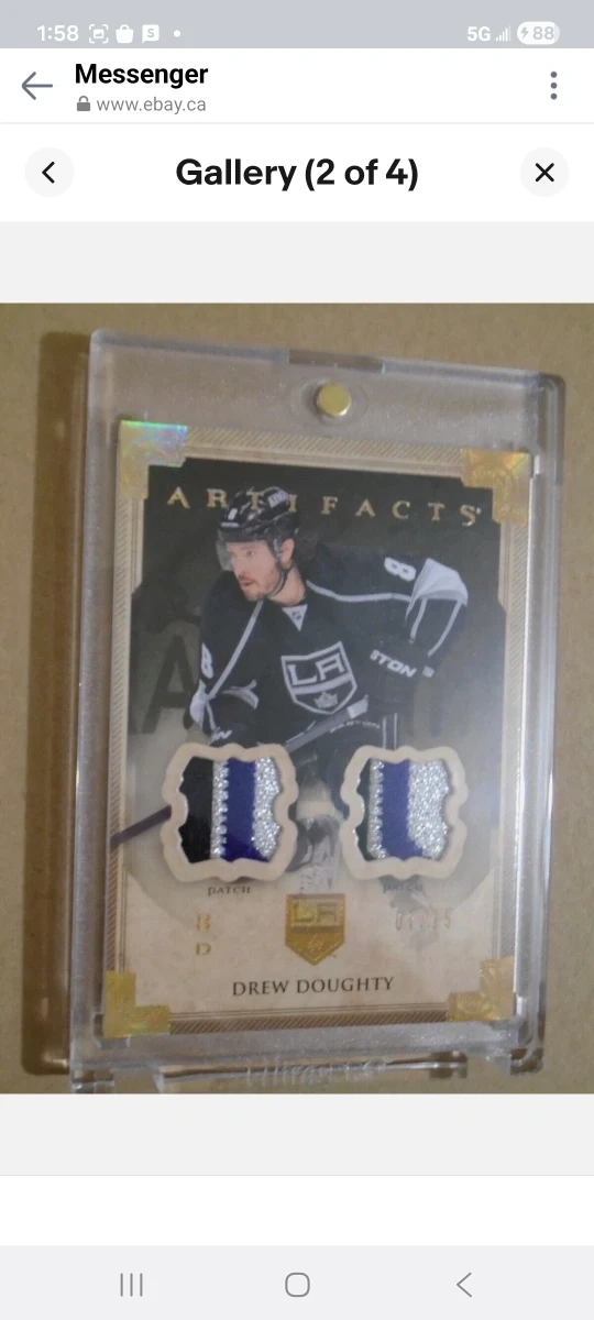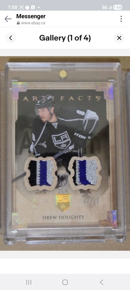 Selling a Drew Doughty Artifacts hockey card. The card features a patch and is numbered 07/15. It's in great condition and comes in a protective case. A nice addition to any hockey card collection! Remember all hockey cards and items can be shipped Canada wide for an extra $10 with tracking. A Paypal invoice will be sent for our Assurance of purchase and sale. You may also choose to use interact at your convenience and confidence