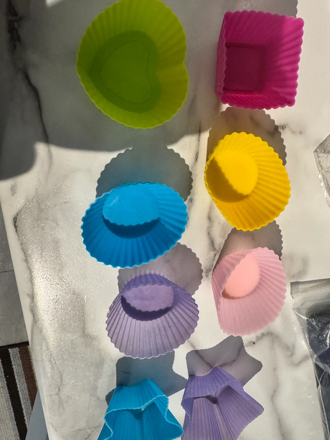 I'm selling a set of silicone baking cups! They come in a variety of fun shapes and colours. Perfect for baking muffins, cupcakes, or other treats. They're easy to clean and reusable too!