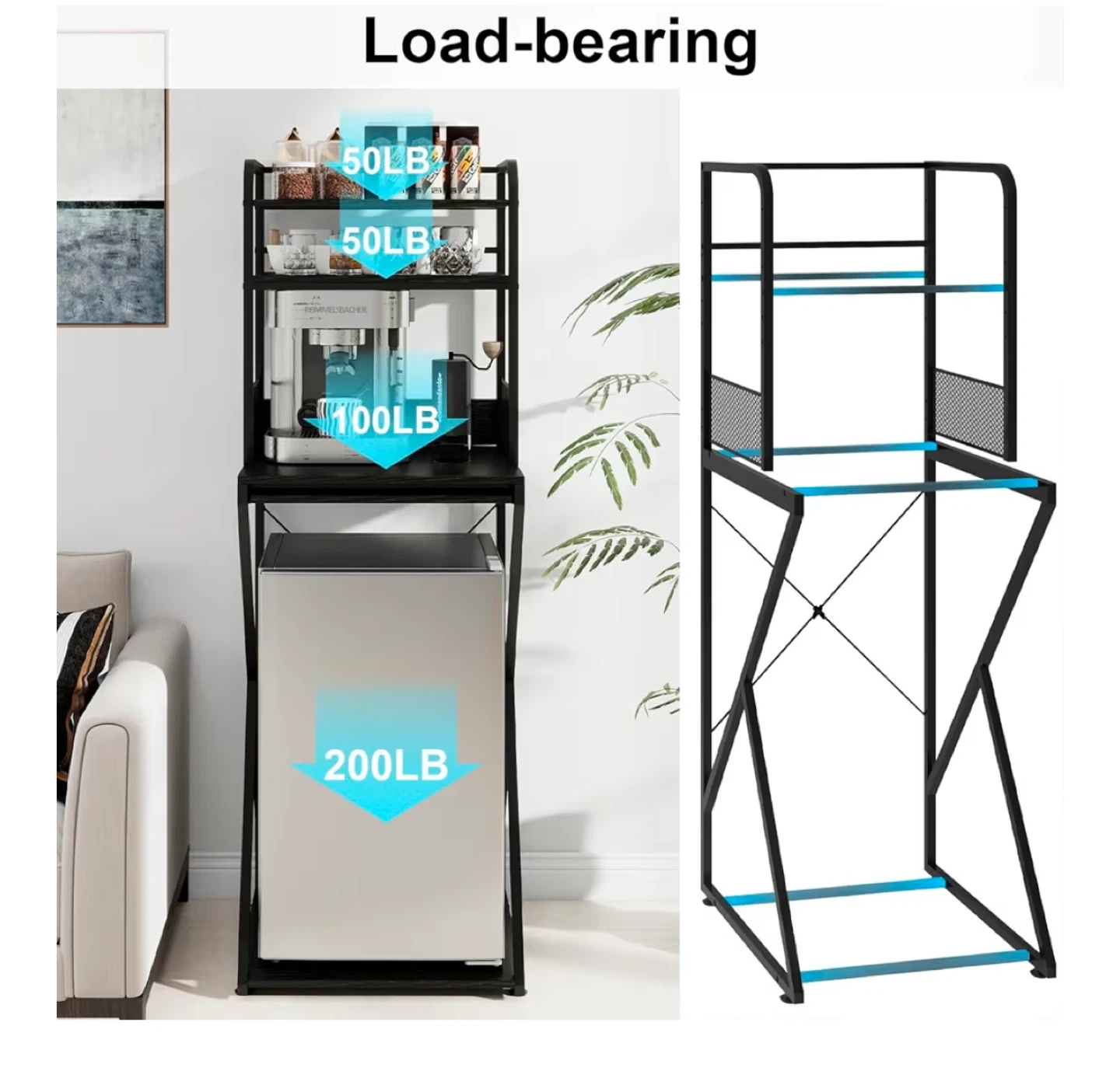 Black Kitchen Baker's Rack with Power Outlet