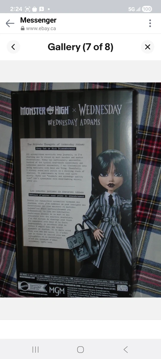 Selling a Monster High doll in collaboration with Wednesday Addams! The doll is still in its original packaging. A great addition to any Monster High collection! Remember all items can be shipped Canada wide with tracking for an extra $10. I Paypal invoice will be issued for our security and Assurance of purchase and sale. You may also use interact at your confidence and convenience