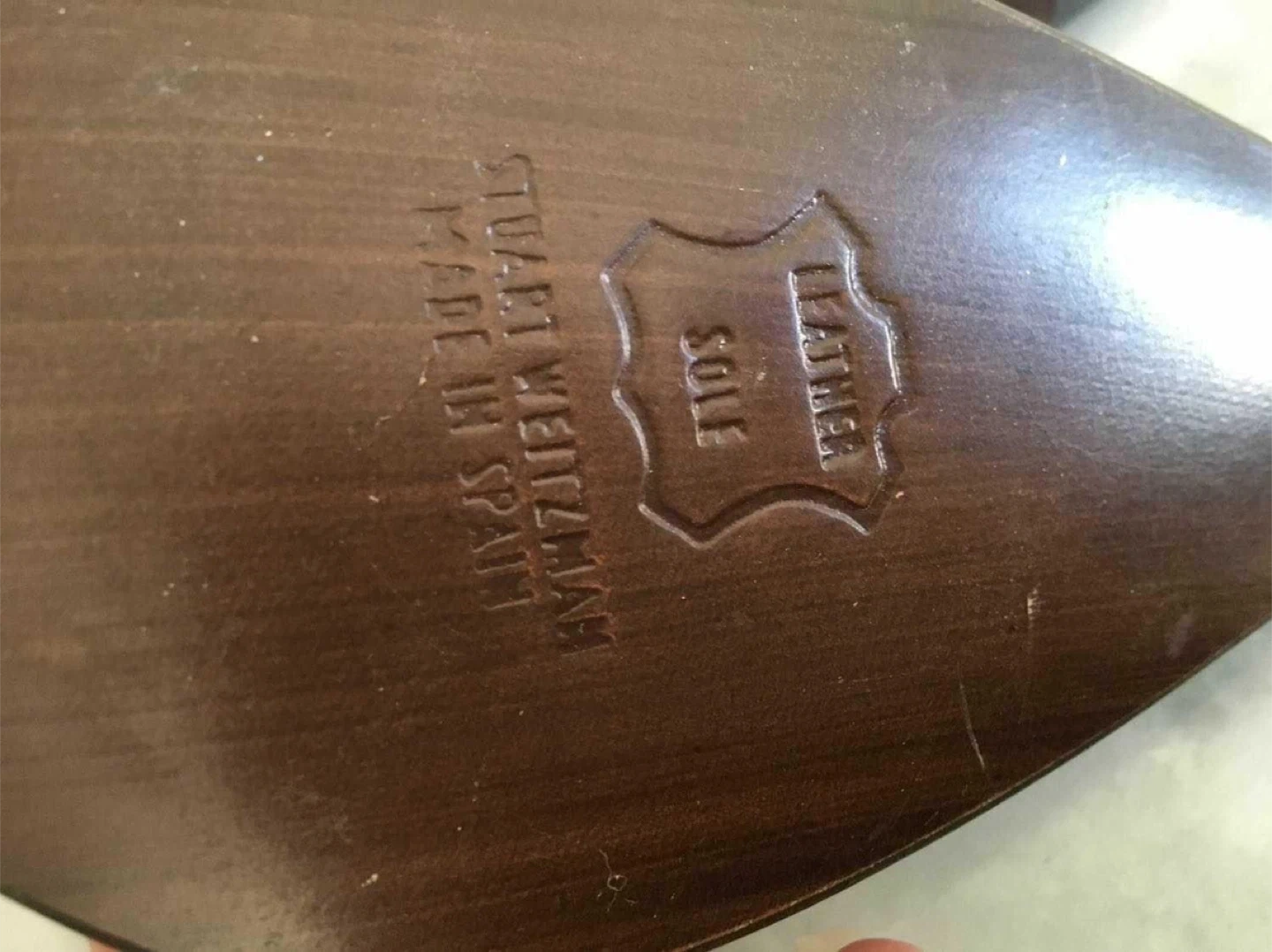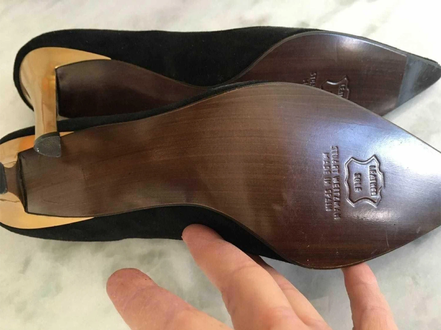 Selling a pair of brand new Stuart Weitzman heels in size 8M. They're a stylish black suede with a gold heel. The soles are made of leather and they were made in Spain