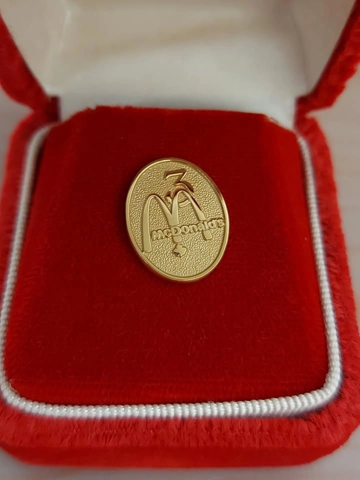 I worked for McDonald's when I was a teenager, and they gave me this 3 year pin for my years of service.