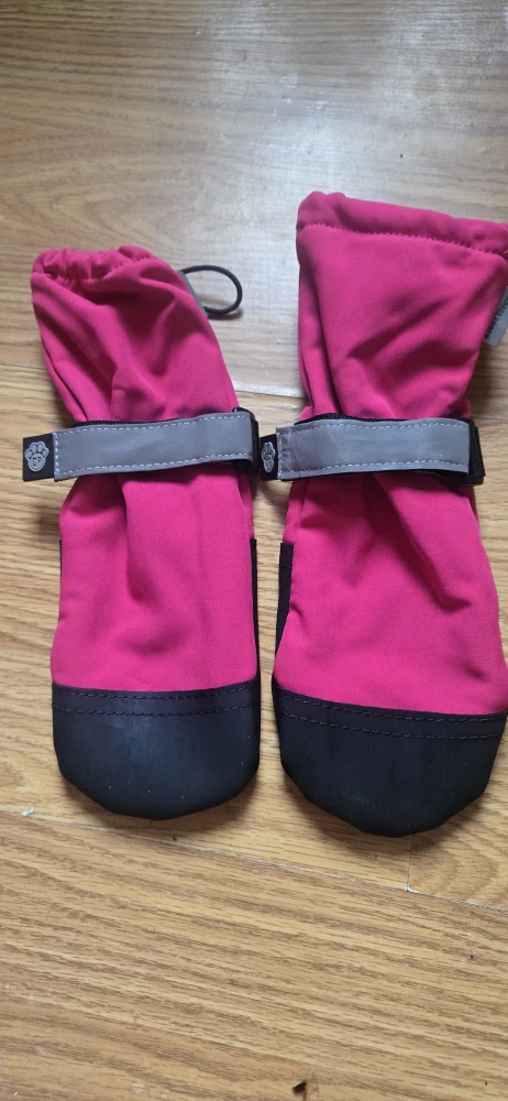 Selling a pair of Canada Pooch Soft Shield Dog Boots in size 6. These boots offer secure paw protection and are designed for easy on/off. They feature a water-resistant fabric and a reflective strap for visibility. The rubber grip soles provide added traction, and they're comfortable for your furry friend!