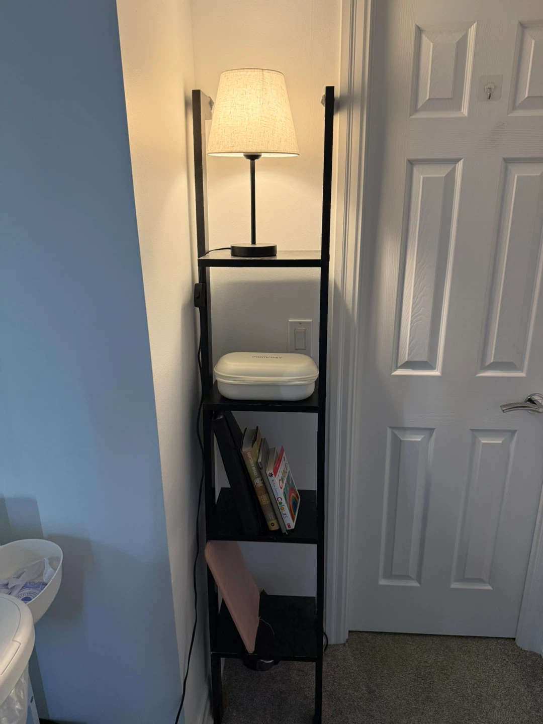 Black Ladder Shelf with Lamp