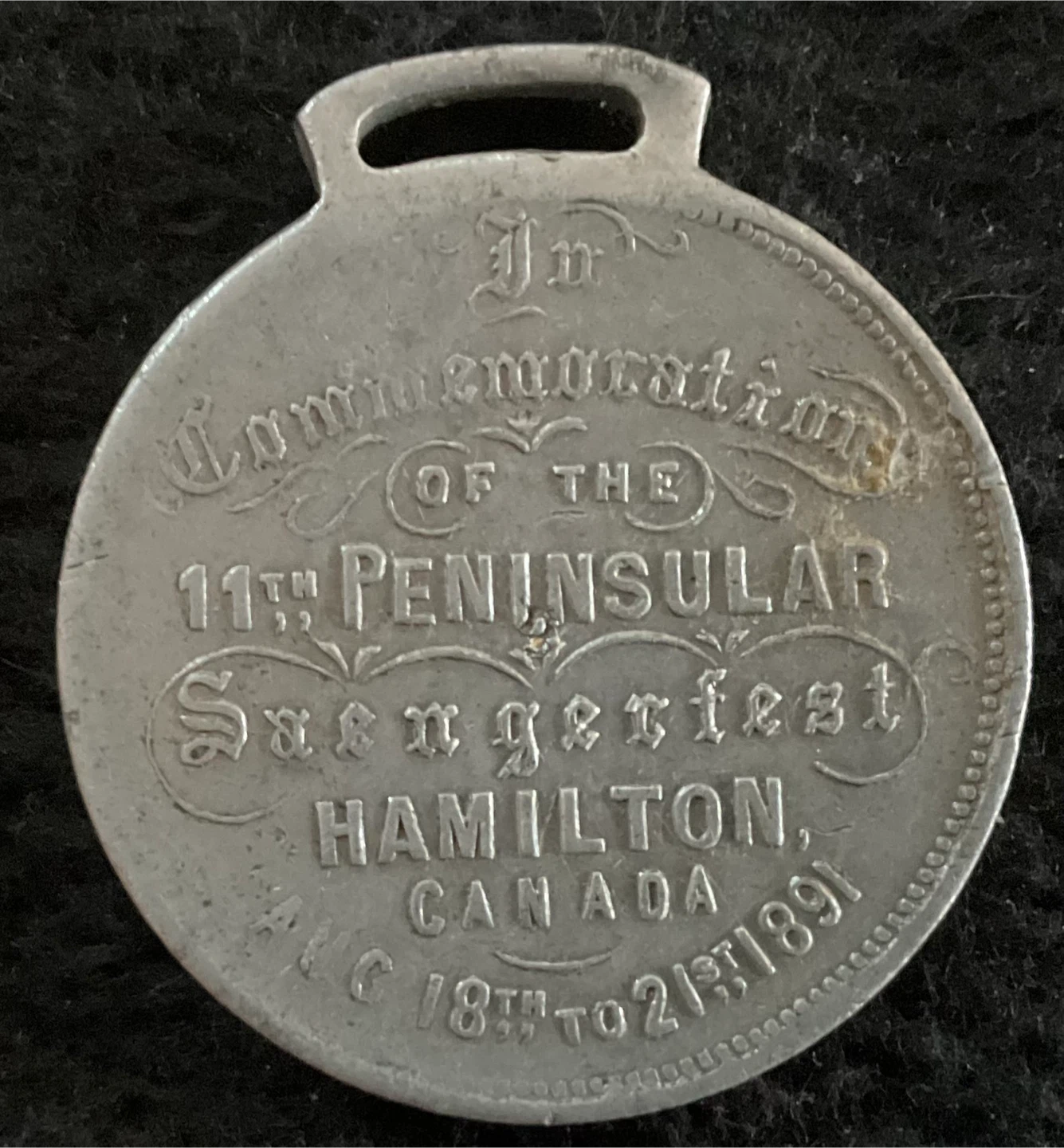 Commemorative Medal - 11th Peninsular Saengerfest Hamilton 1891
