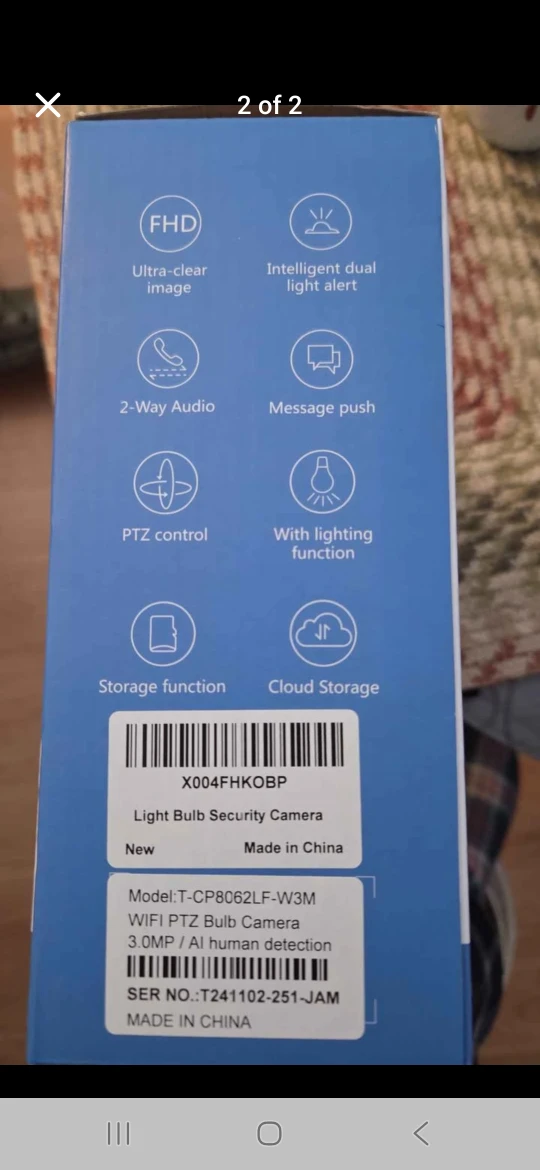 Selling a new light bulb security camera still in its box! It features FHD ultra-clear image quality, intelligent dual light alert, 2-way audio, message push, PTZ control, lighting function, storage function, and cloud storage.