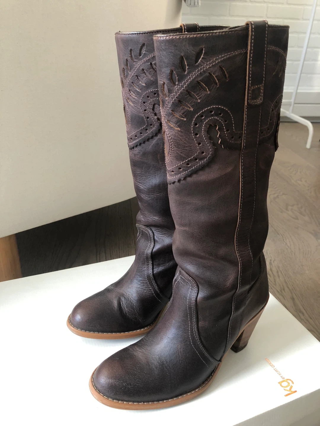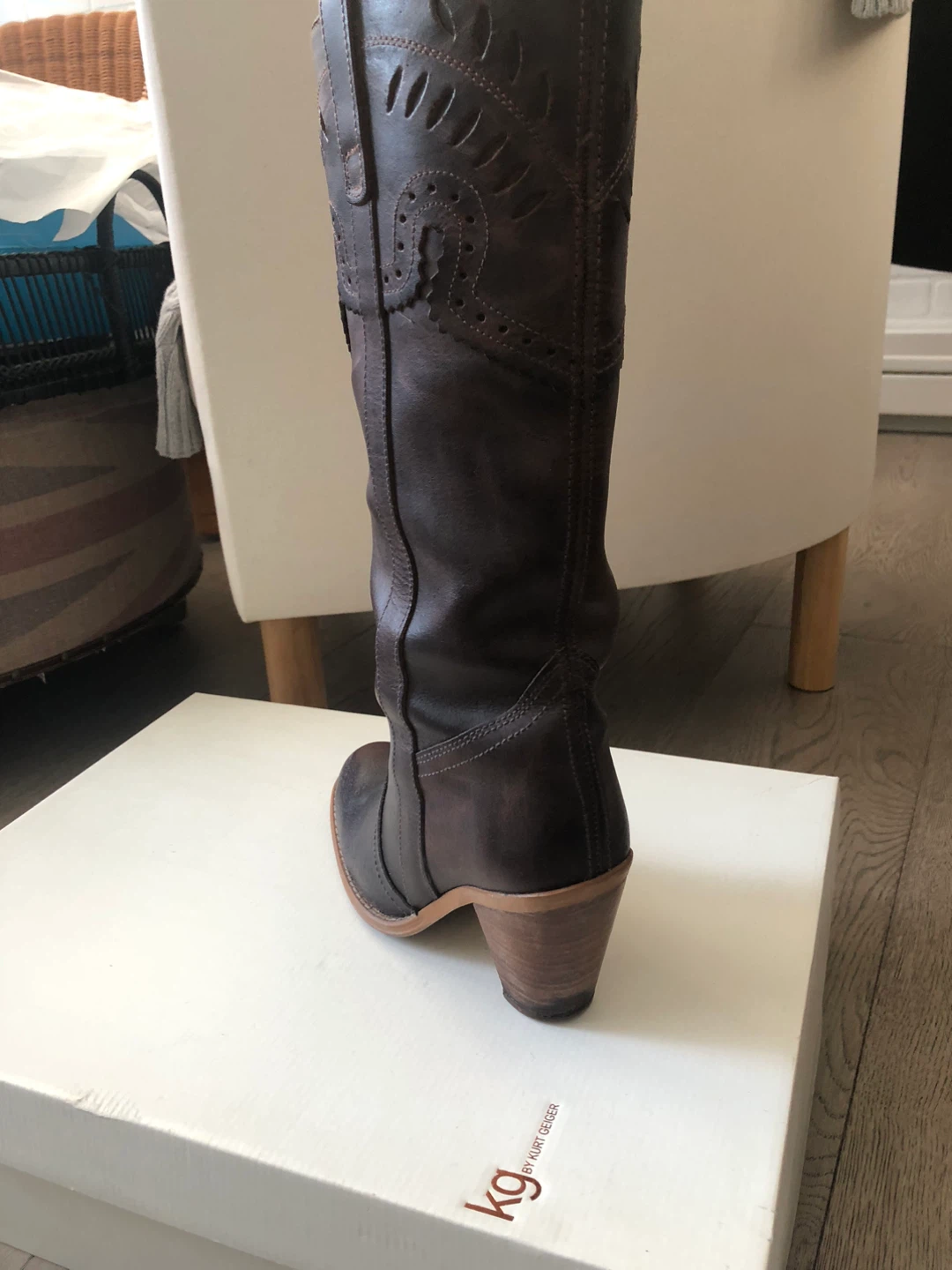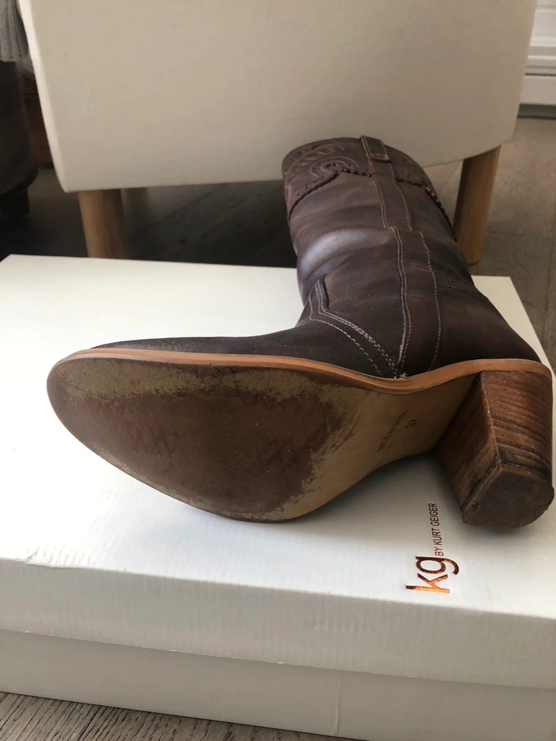 Selling a pair of Kurt Geiger leather boots in brown. They are a size 37. The boots are in good condition and come with the original box!