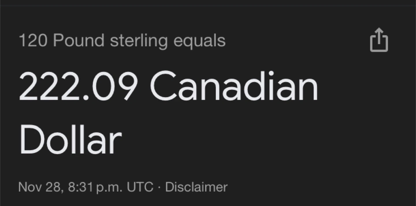 I bought them in London- it cost me 120 pounds or $222 CAD
