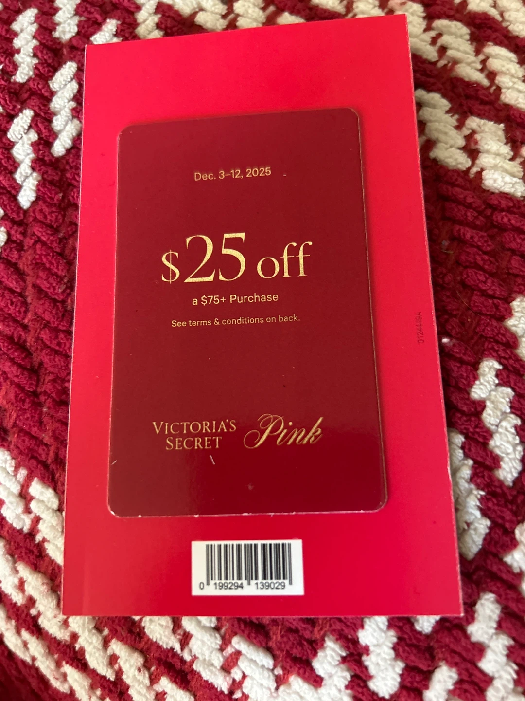 Victoria's Secret Pink $25 off coupon for a $75+ purchase. The coupon expires December 3-12, 2025