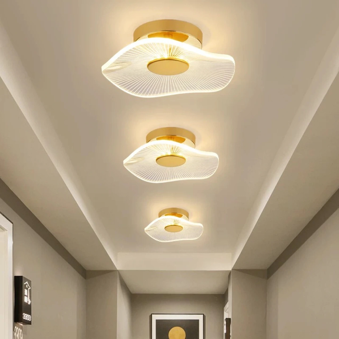 Add a touch of modern elegance to your home with this beautiful LED ceiling light! The gold finish and unique design will brighten any room. Comes with the original box for easy transport and installation