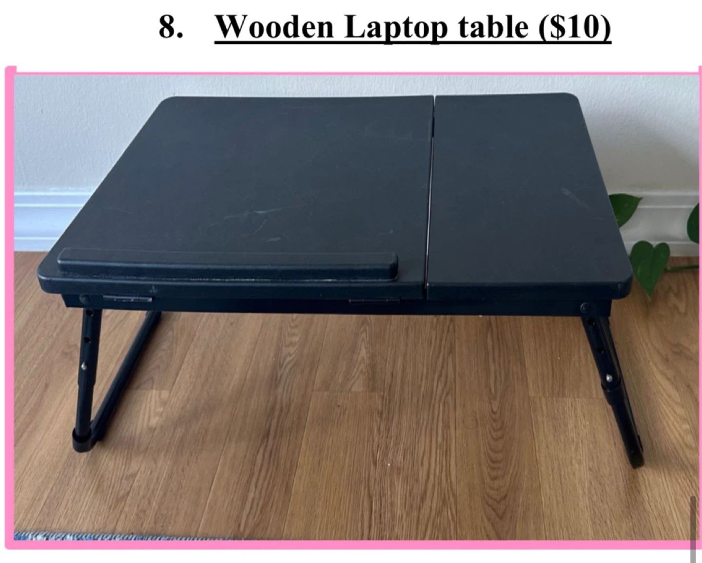 Selling a wooden laptop table! It's in great condition and perfect for working from home or on the go. The legs are adjustable, making it easy to find the perfect height for your needs