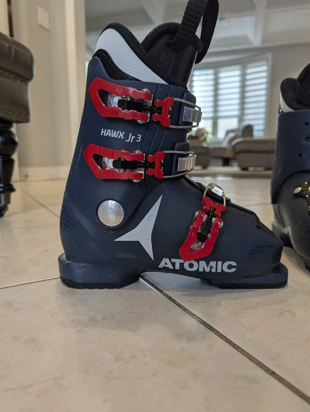Selling a pair of Atomic Hawx Jr 3 kids' ski boots in great condition. These are fantastic boots for progressing young skiers who need more support than a basic 1 or 2-buckle beginner boot but still want comfort for all-day skiing.