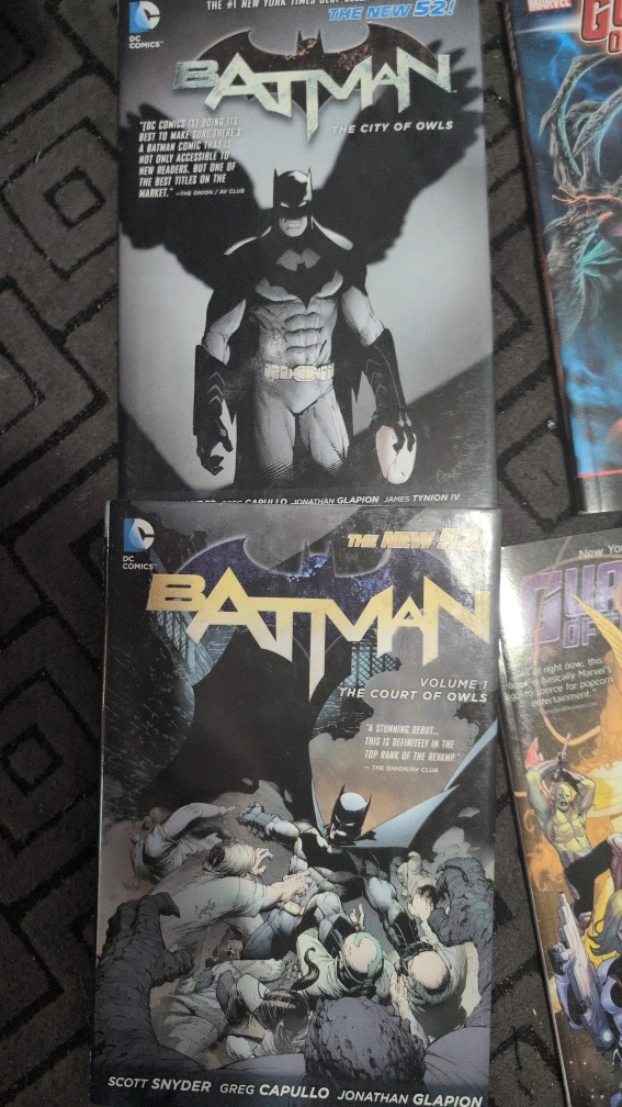 Batman (The City of Owls, The Court of Owls), The Simpsons, Death of Superman, and, Harry pothead full series..Aquaman. Great for any comic enthusiast!