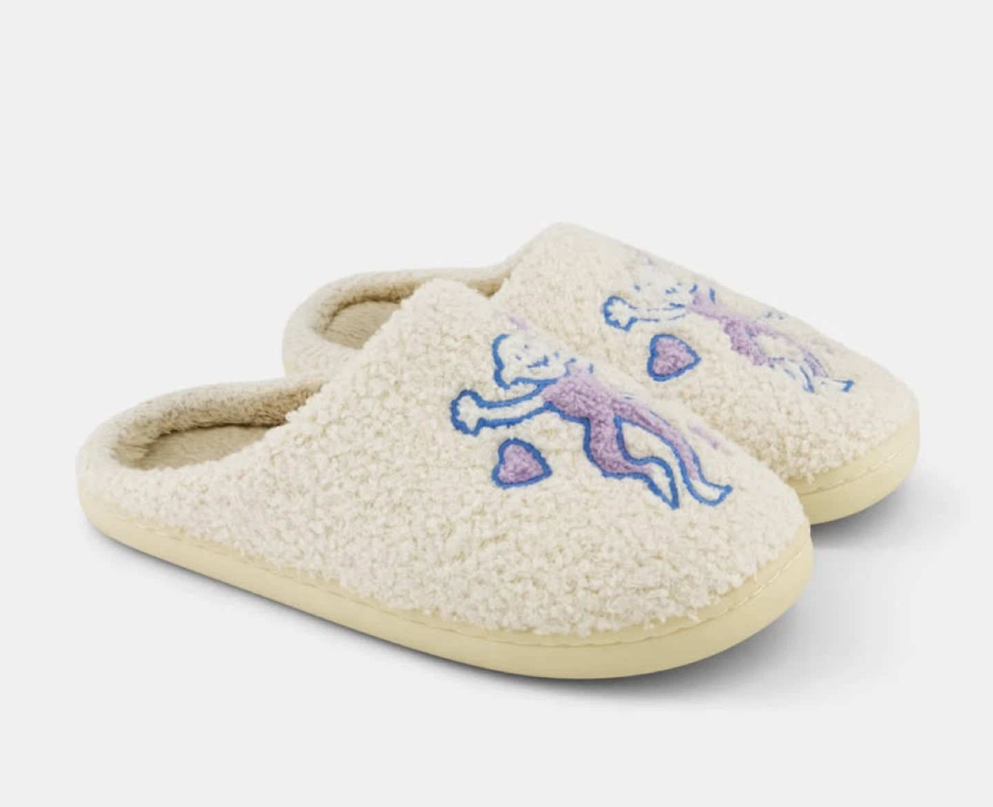 Cozy up with these Lazy One cream-colored slippers! They feature a fun design and are perfect for keeping your feet warm around the house. Size M.