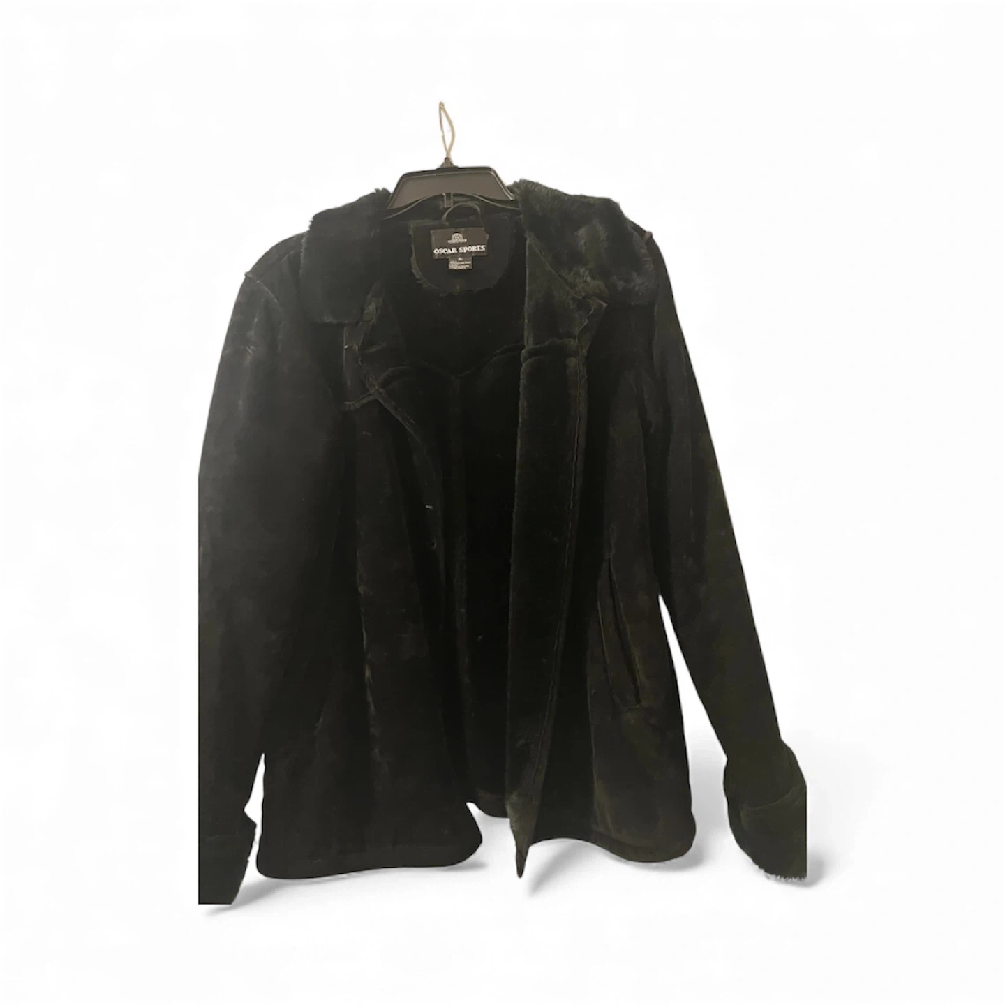 Here's a black jacket from Oscar Sport. It looks to be in great condition and ready for a new owner! It's a stylish piece that would be great for cooler weather. Size XL