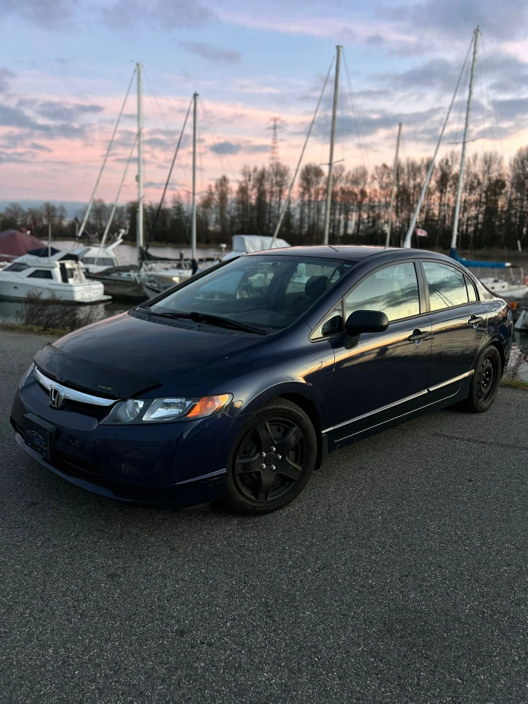Selling a Honda Civic sedan in blue. It appears to be in good condition, perfect for getting around town. If you're interested in a reliable and efficient car, this could be the one for you!