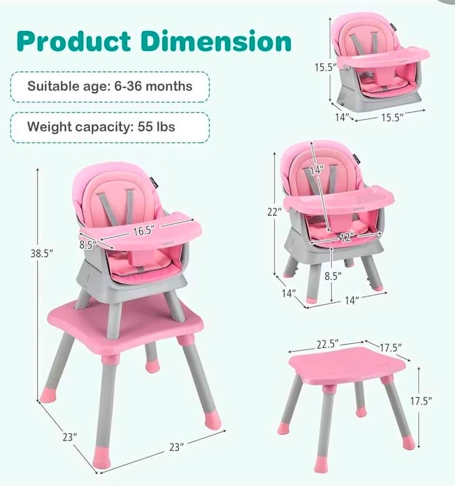 This versatile 8-in-1 baby high chair grows with your child and converts into multiple setups: full-size high chair, booster seat, toddler chair, kids table & chair, and more. Perfect for feeding, playtime, and learning.