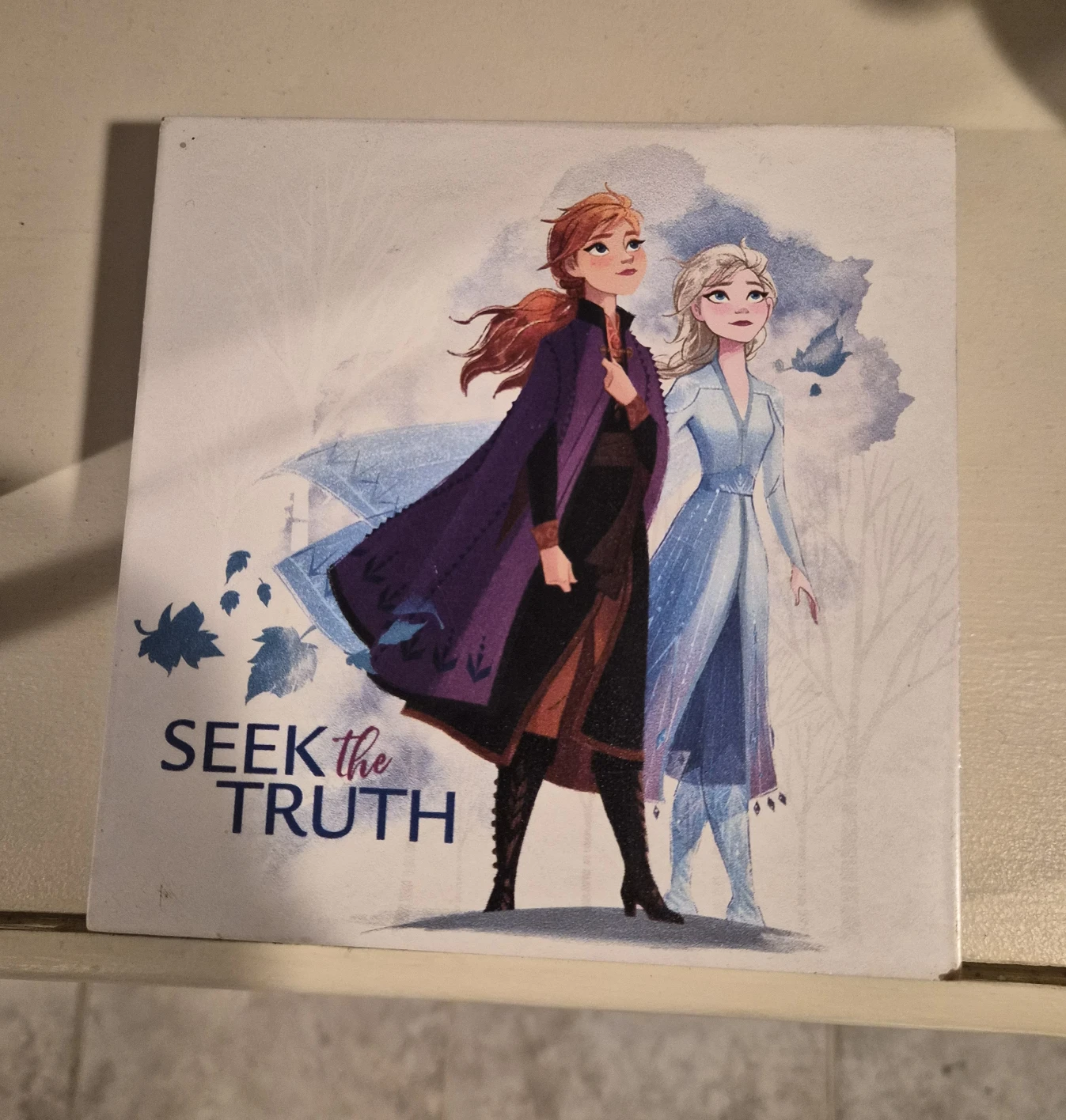 Selling a canvas art print featuring Anna and Elsa from Frozen 2. The print says "Seek the Truth" at the bottom.