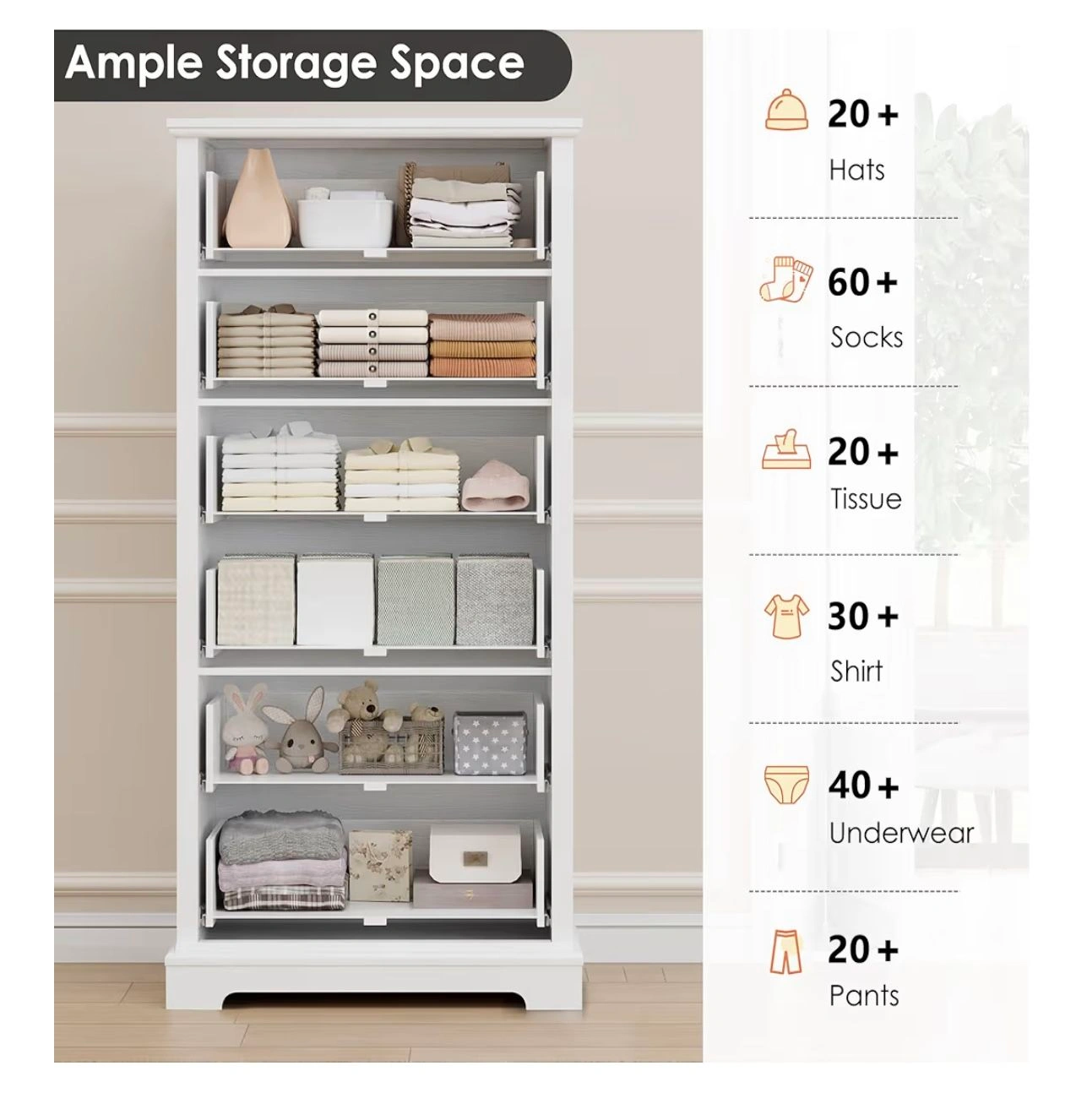 Upgrade your space with this beautiful HOSTACK 6-drawer tall dresser, combining style, durability, and functional storage. Standing at 52 inches tall, this vertical chest offers ample capacity for organizing clothing, linens, accessories, and more — all while enhancing your room’s aesthetic.