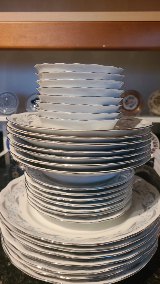 Selling a set of dinnerware with a delicate floral design. The set includes plates and bowls, perfect for adding a touch of elegance to your dining table!