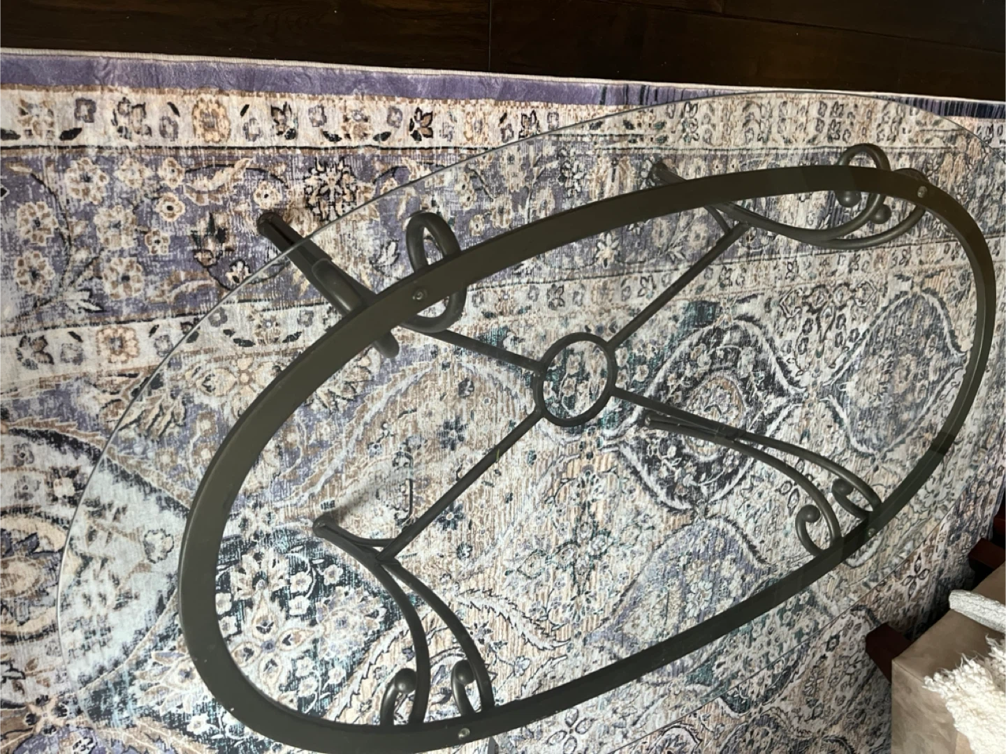 FREE Oval Glass Coffee Table on wrought iron base
