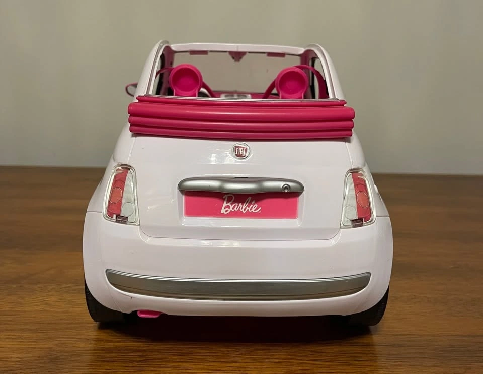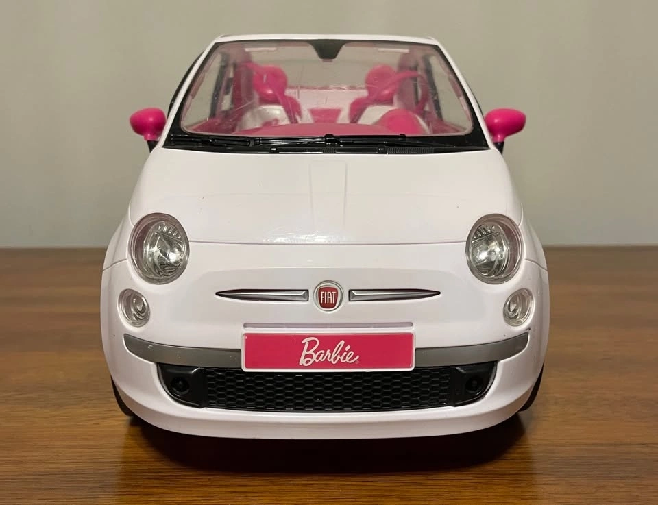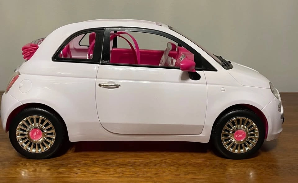 Rare Collectible Vintage Authentic 2008 Mattel Barbie Fiat 500 convertible car (model FVR07), white exterior with pink interior. Very good pre-owned condition. Light scratches on front windshield (see photos). Includes working doors, rolling wheels, side mirrors, and seat belts. Asking $50 or best offer. Can meet around the GTA.