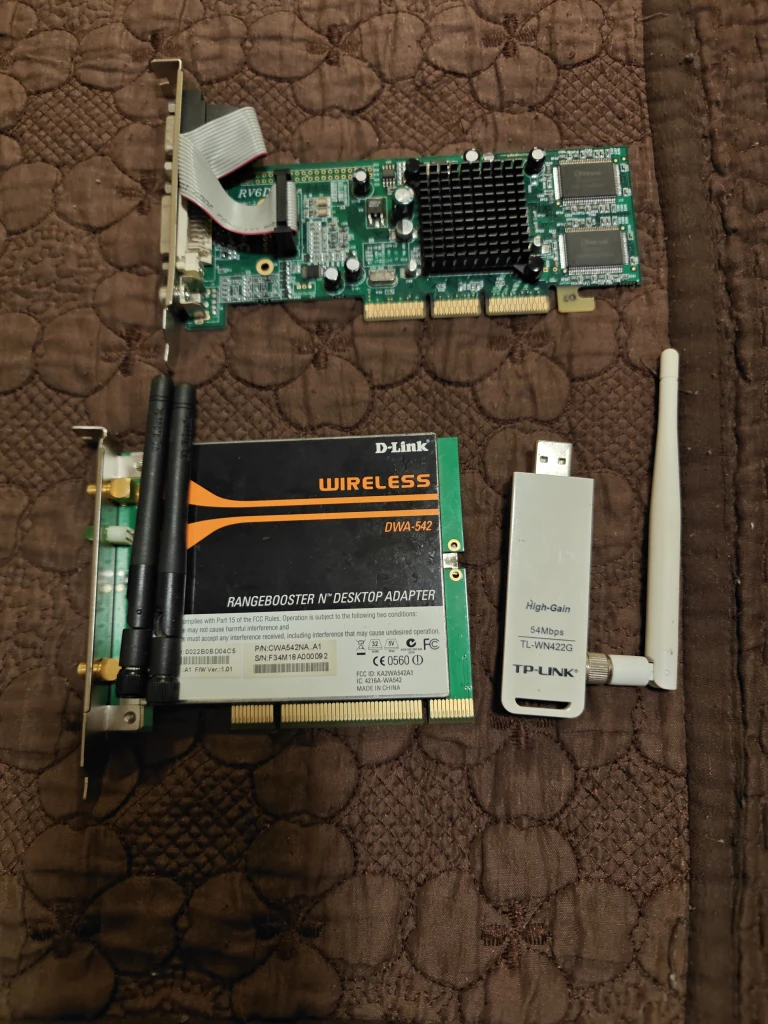 1 / 41 / 4Buy & SellComputer Parts - WiFi: TP-Link/D-Link & Video CardComputer Parts - WiFi: TP-Link/D-Link & Video CardFreeWiFi: 1. TP-Link TL-WN422G (USB 54Mbps). 2. D-Link DWA-542 (PCI 300Mbps). Video Card: ATI RV6DL (Radeon 7000 64MB 64-bit DDR AGP).ConditionGoodWHERE TO MEET154 Sedgemount DrView MapSELLERverifiedjamaWoburn48137 reviews1 chats·1 favorites·97 viewsSEND CHAT TO SELLERHi jama! I’m interested in your listing.Hi jama! I’m interested in your listing.Get the Karrot app to chatSign In to chat
