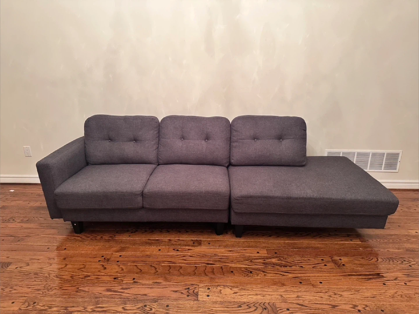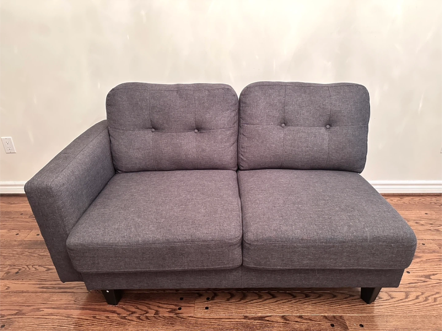 Selling a modern gray sectional sofa in great condition! The sofa is a stylish grey colour and would look great in any living room or den. It's super comfy and ready for a new home! We have two pairs of the sofa. If you want two pairs the price is 350